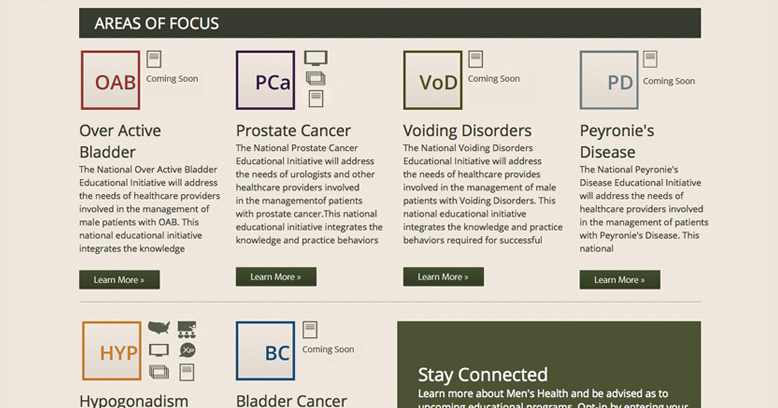 Foundation for Men's Health was originally designed to briefly cover several diseases pertaining to men's health. As time went by, the need to divide the site into sections became apparent, and their site design could not handle this new structure. So, the Foundation for Men's Health came to us to decide the best course of action. We took a clean slate approach and developed a modular design that not only satisfied their current need, but also allows for future site expansion.
